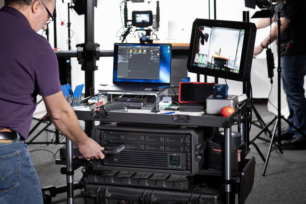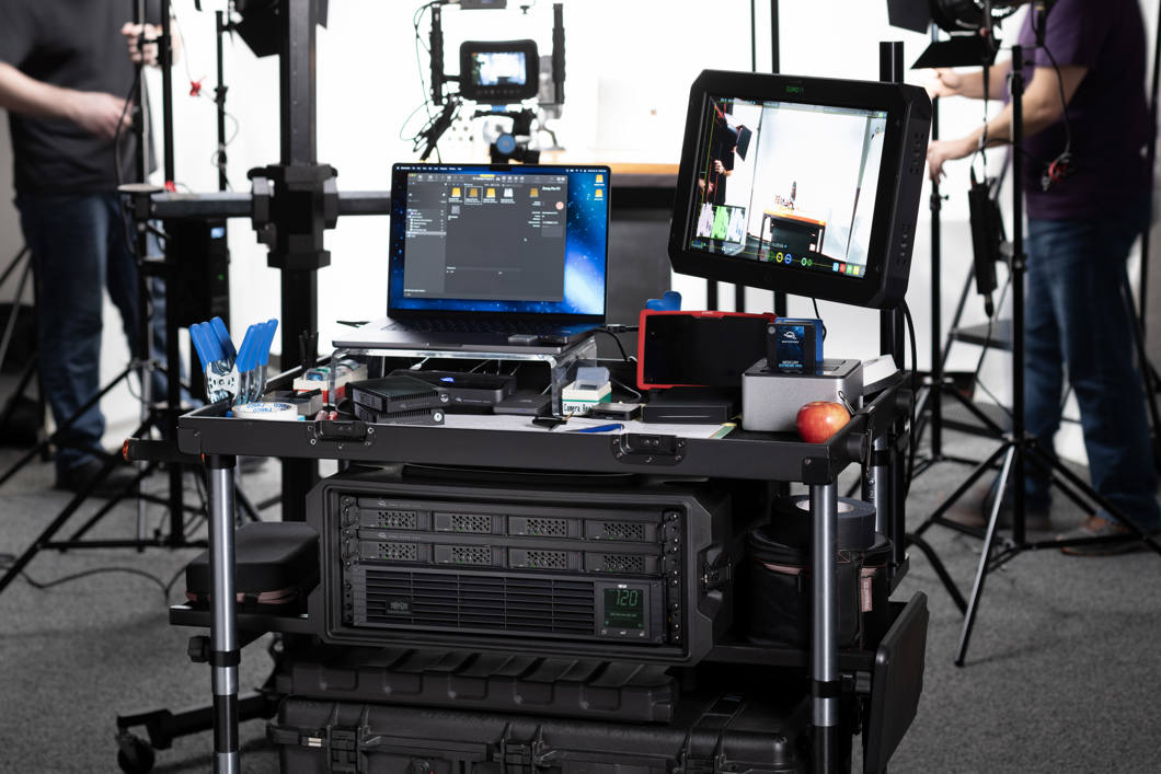 - Pe platou: se potrivește cu ușurință în cărucioarele DIT mobile pentru a capta secvențe multistream, de înaltă rezoluție, la viteză maximă de cadre, în timp ce conectează în lanț până la cinci dispozitive Thunderbolt suplimentare.