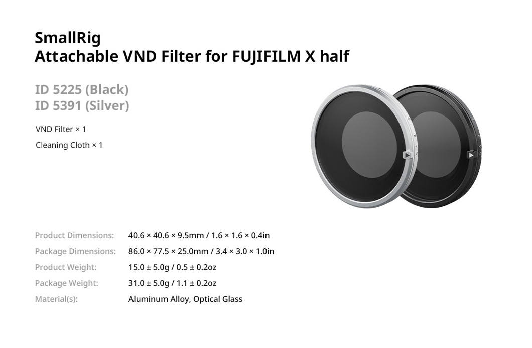 SmallRig 5214 Filtru UV Magnetic pentru FUJIFILM X half Black