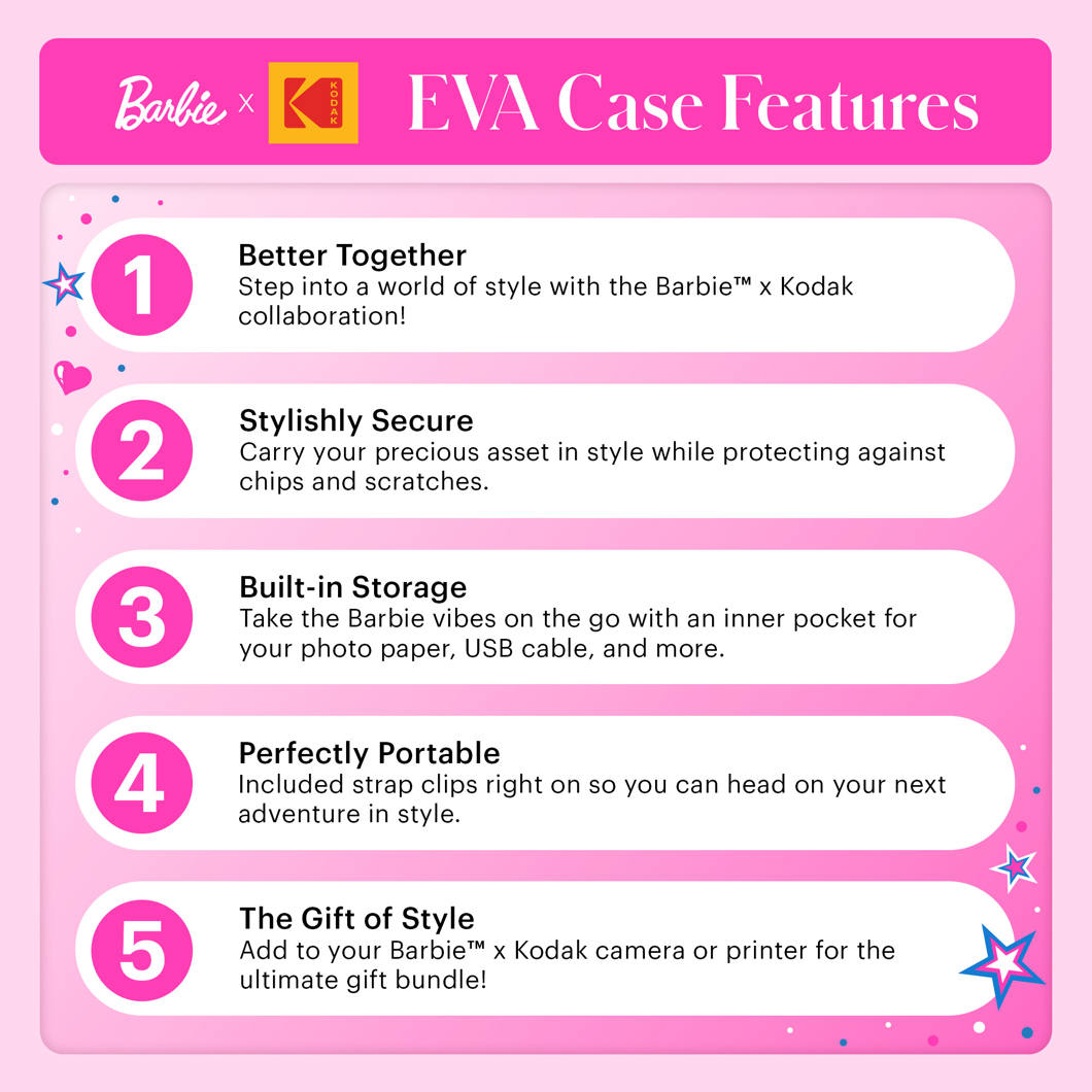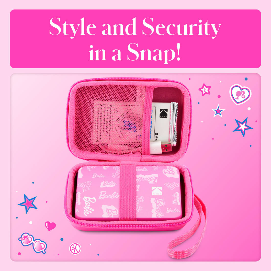 Oferă cadoul stilului; Împerechează aparatul foto sau imprimanta Barbie x Kodak cu această husă elegantă și durabilă pentru un cadou suprem!