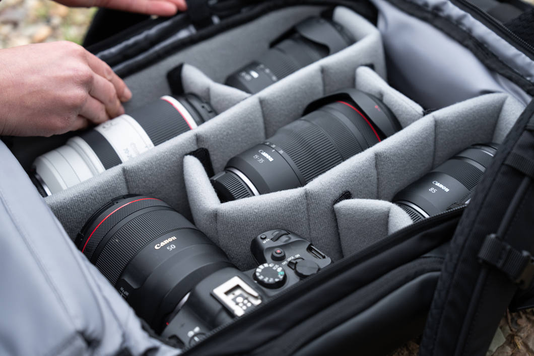 Singura geantă PRVKE 21 este compatibilă cu cuburile pentru cameră WANDRD, organizatoarele tehnice și alte accesorii și vine în mai multe culori.