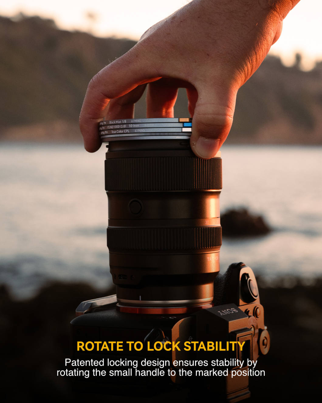 JETMAG filters are built for high-performance with ultra-slim frames that eliminate vignetting, even with ultra-wide lenses. The patented locking design ensures that stacked filters stay firmly in place, making these filters ideal for capturing landscapes, cityscapes, and portraits.